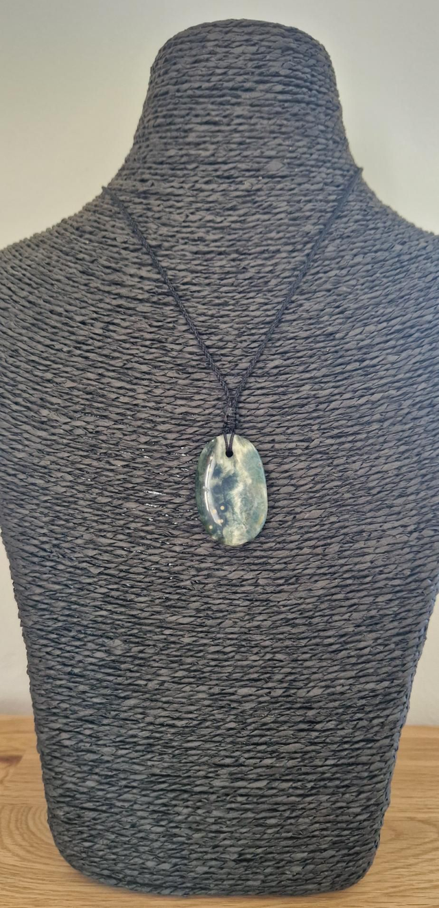 Monté sur cordon en nylon avec lien coulissant pour ajuster la longueur.