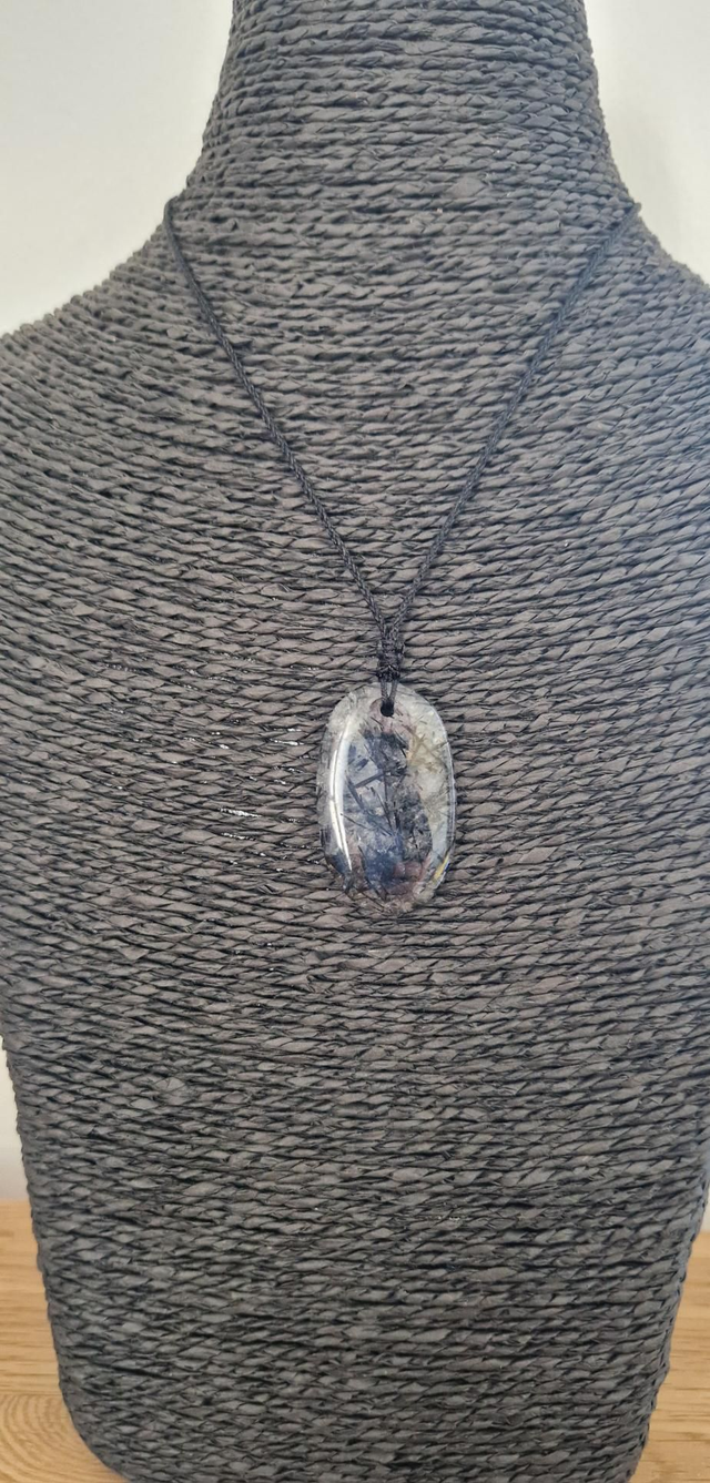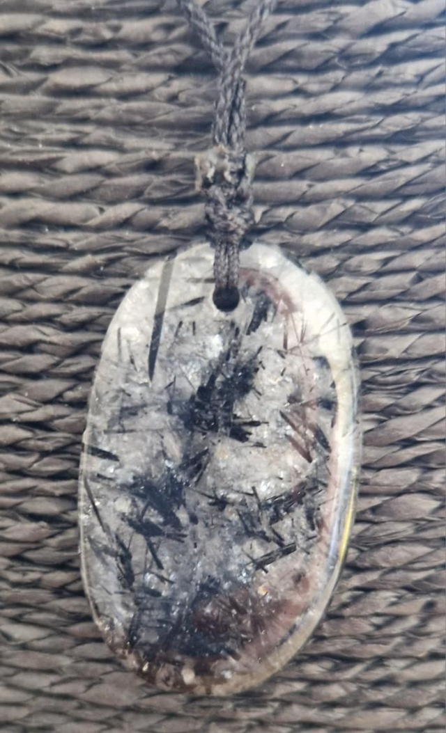 Pendentif pierre percée Quartz Rutile noir